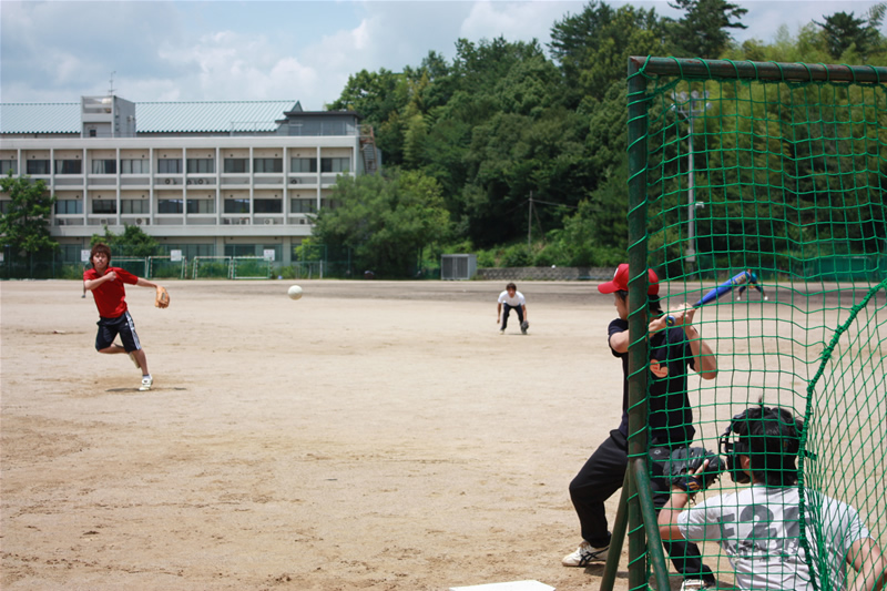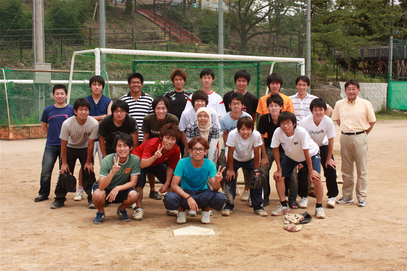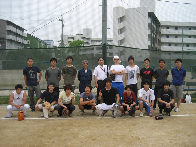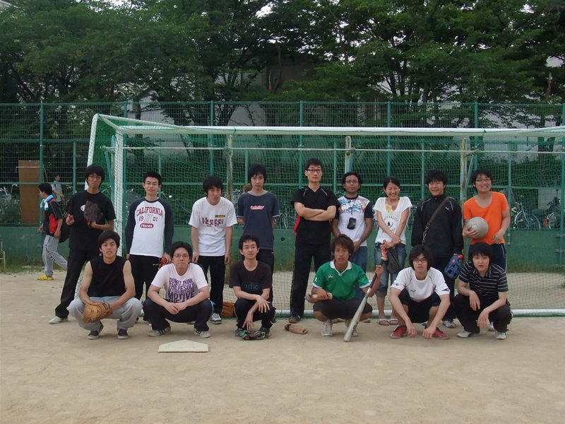 毎年恒例の、機械科学系11研究室対抗によるソフトボール大会。2009年度の決勝戦は、7月16日(木)の小雨が振る中、5連覇を狙う平尾研と初優勝に燃える杉本研の組み合わせでプレイボールとなりました。