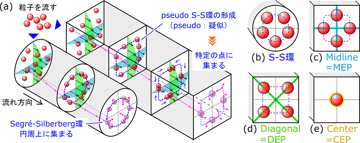 大阪大学大学院基礎工学研究科 廣畑佑真さん(博士後期課程)、杉山和靖教授(理化学研究所光量子工学研究センター 客員研究員兼任)、関西大学システム理工学部 関眞佐子教授、板野智昭教授、佐井一総さん(修士課程(当時))、丹下祐希さん(修士課程(当時))、 西山朋宏さん(修士課程)、岡山大学学術研究院環境生命自然科学学域 鈴木大介教授、湊遥香講師(特任)らの研究グループは、マイクロ流路内における粒子の集束パターンが粒子の慣性と変形性によって劇的に変化することを明らかにしました。硬い粒子が流路の壁近くに集まるのに対し、やわらかいヒドロゲル粒子は流路断面の中心や対角線上に集まることを実証しました。