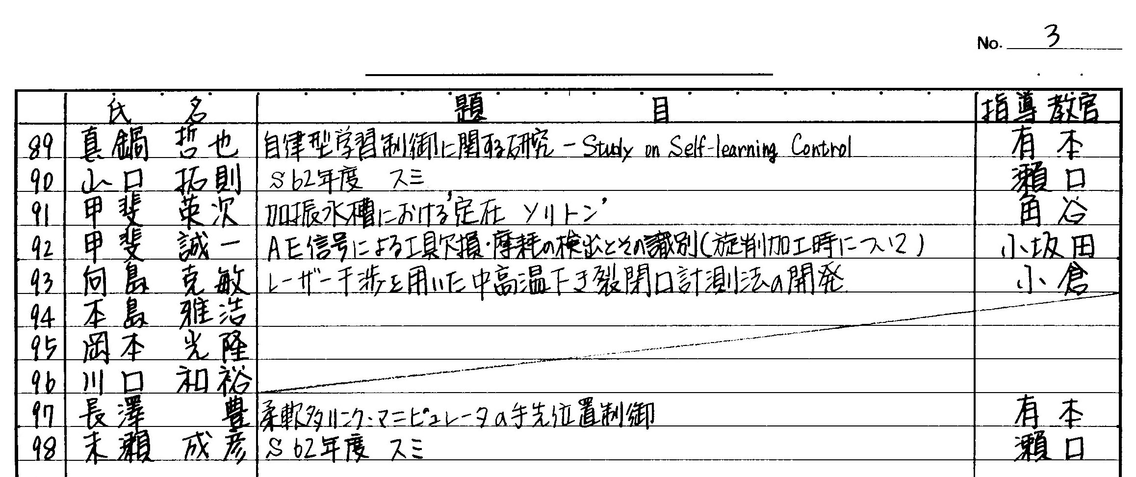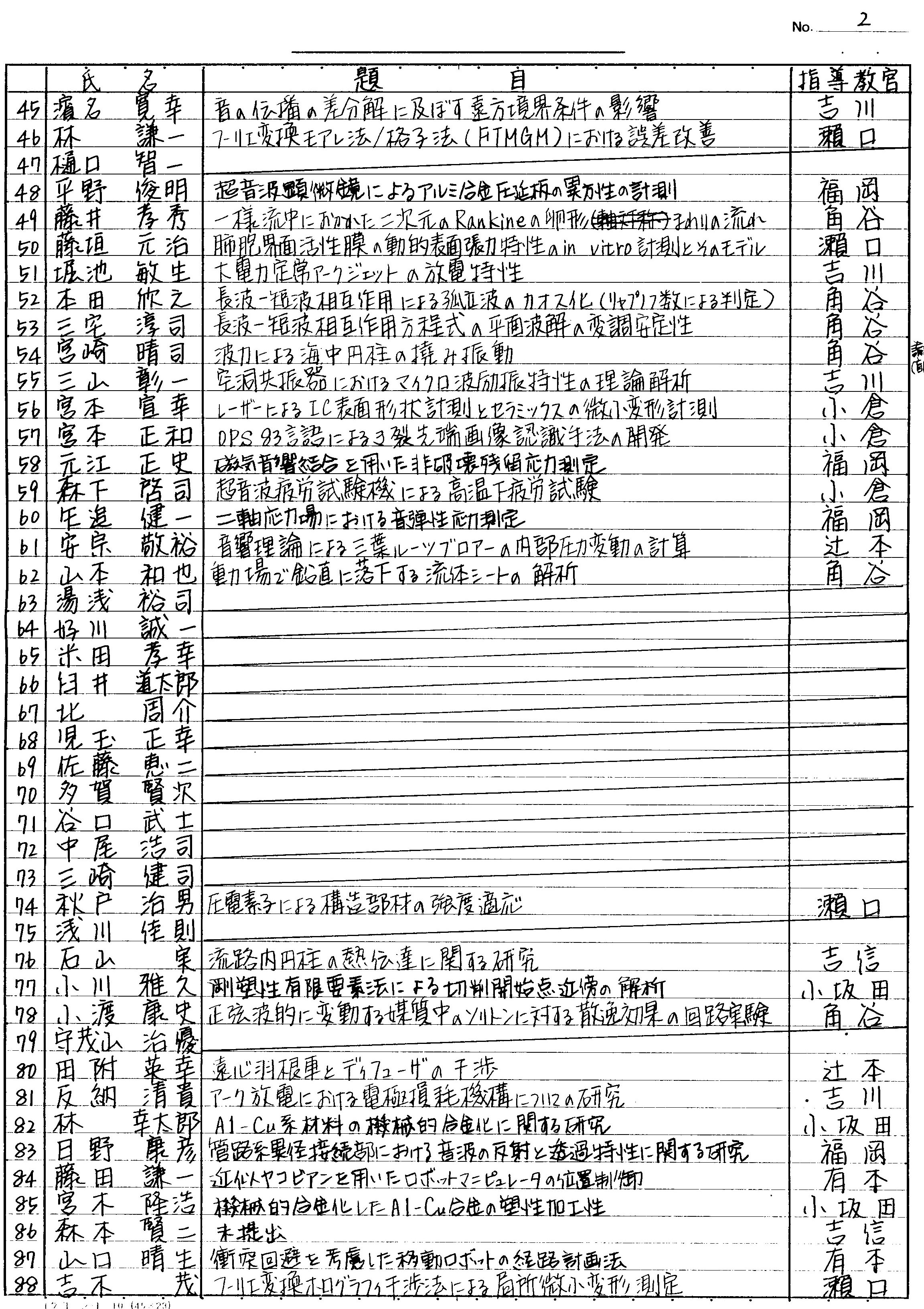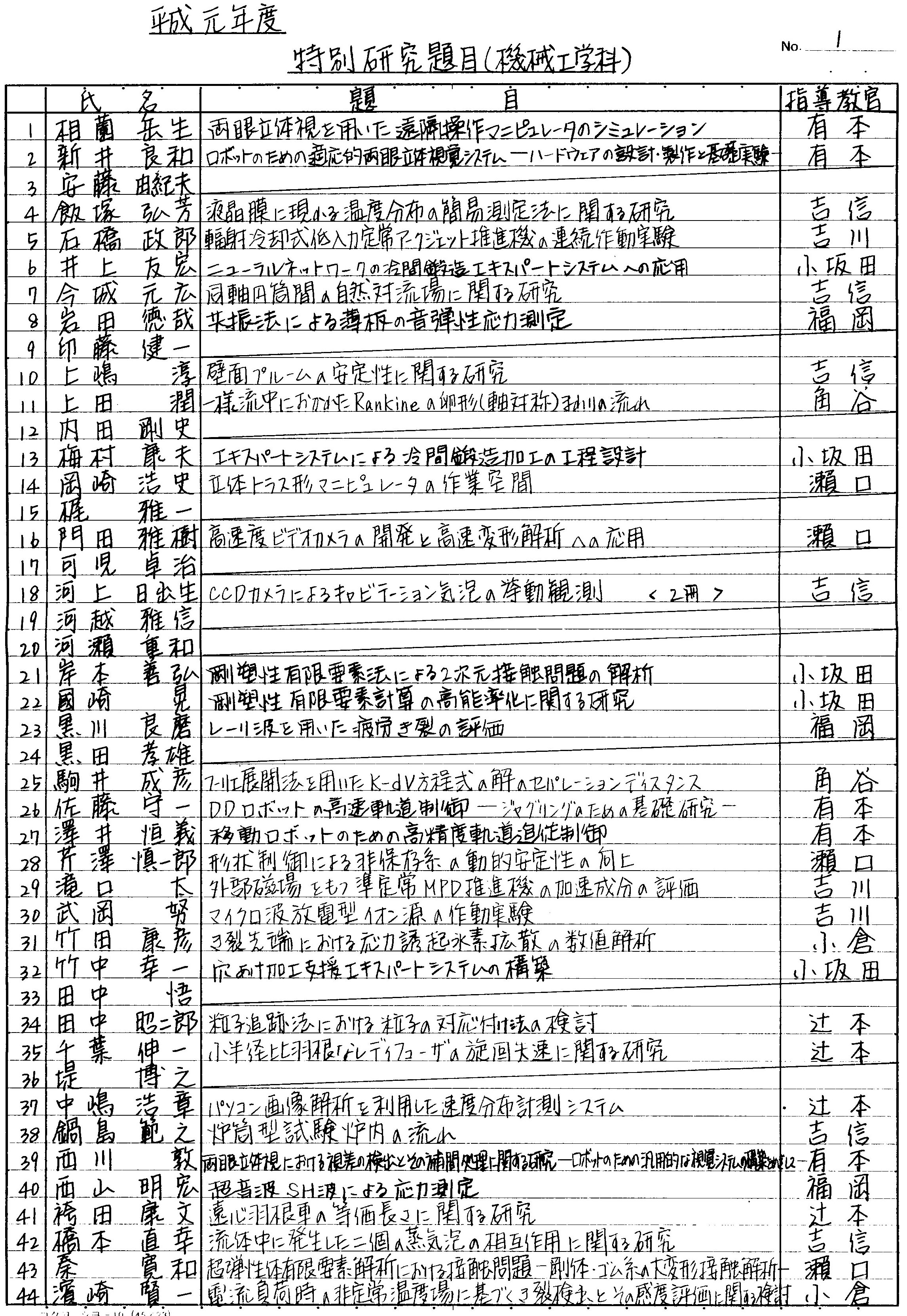 > 平成元年度 卒業論文題目