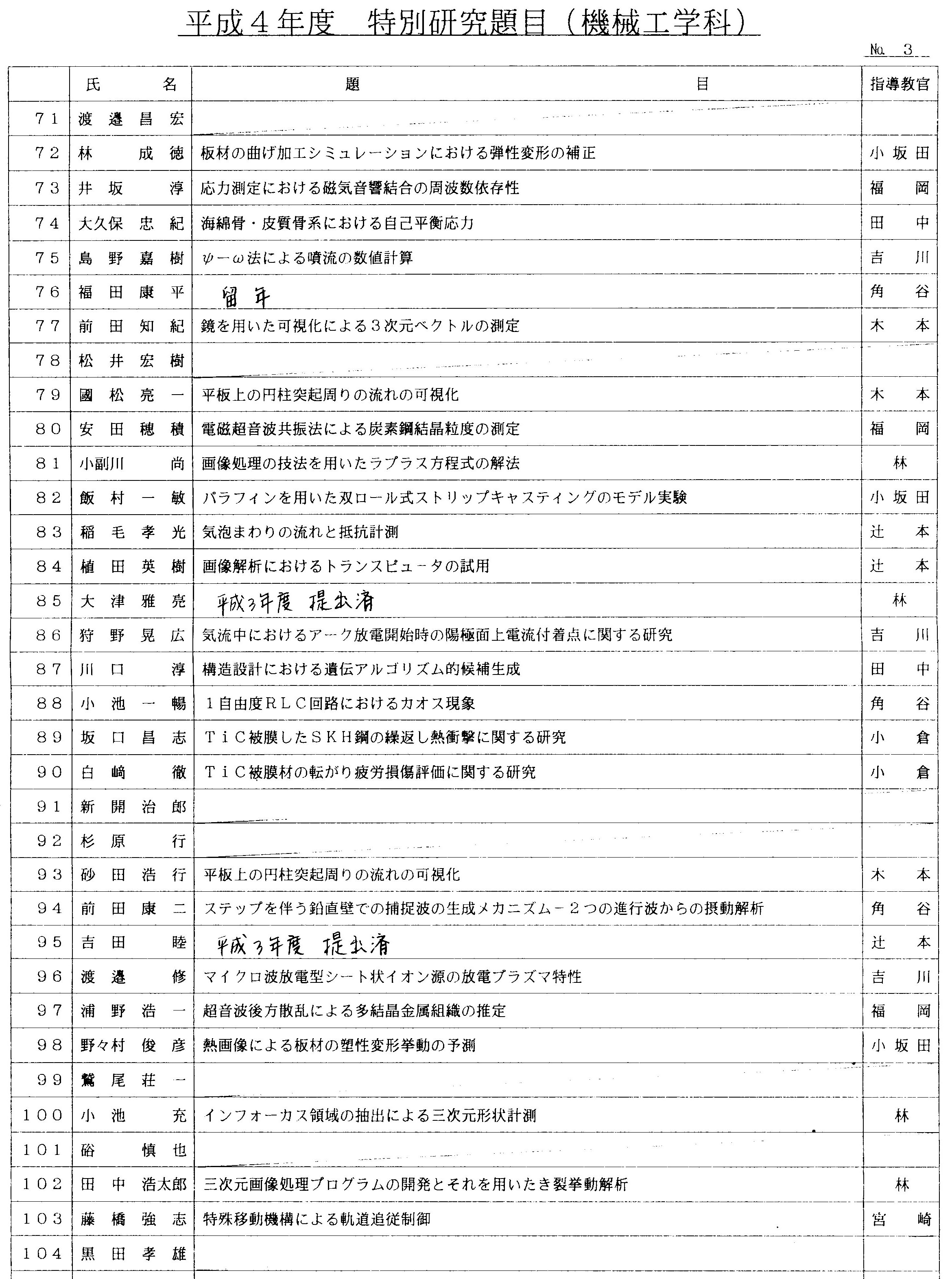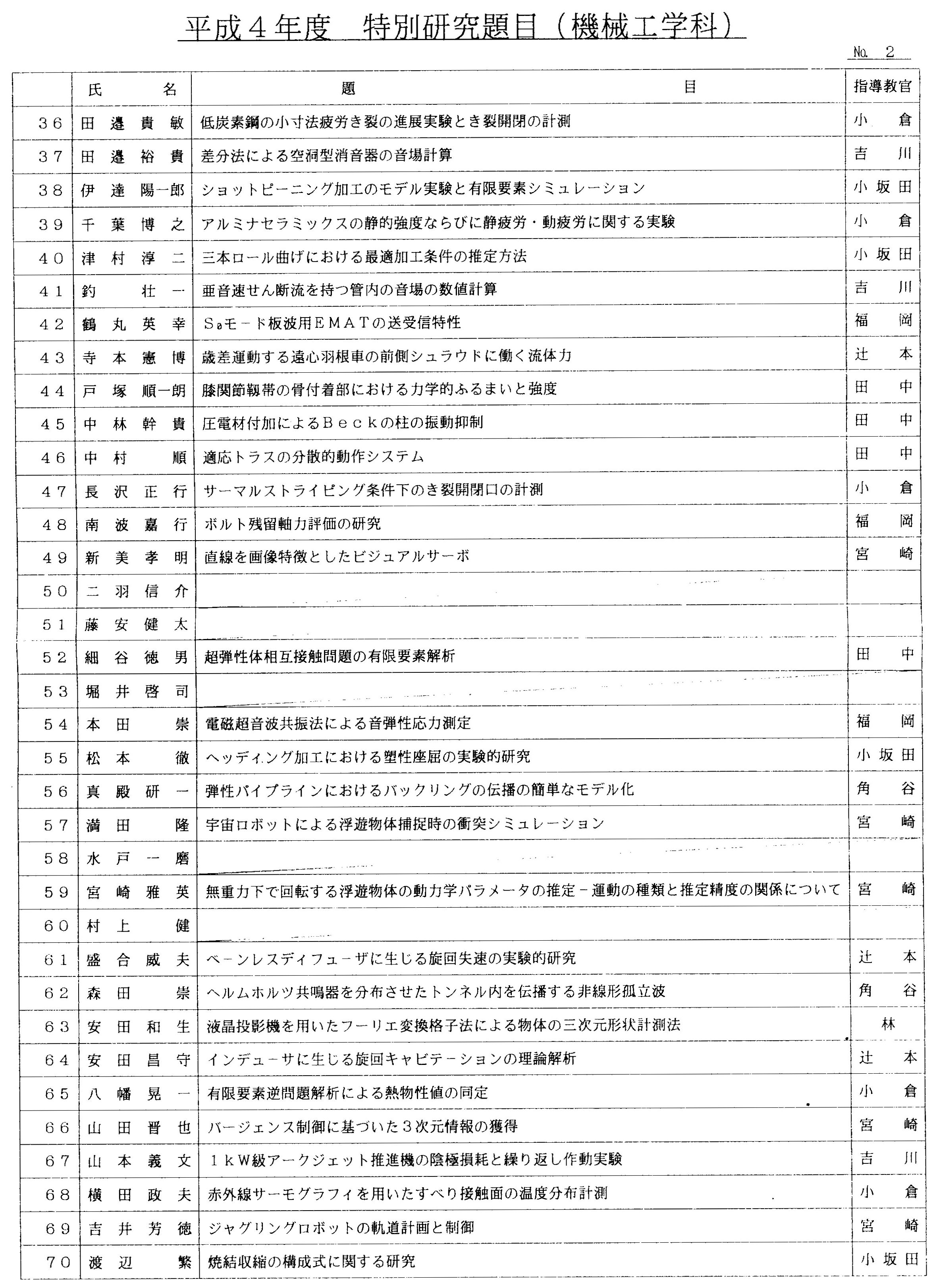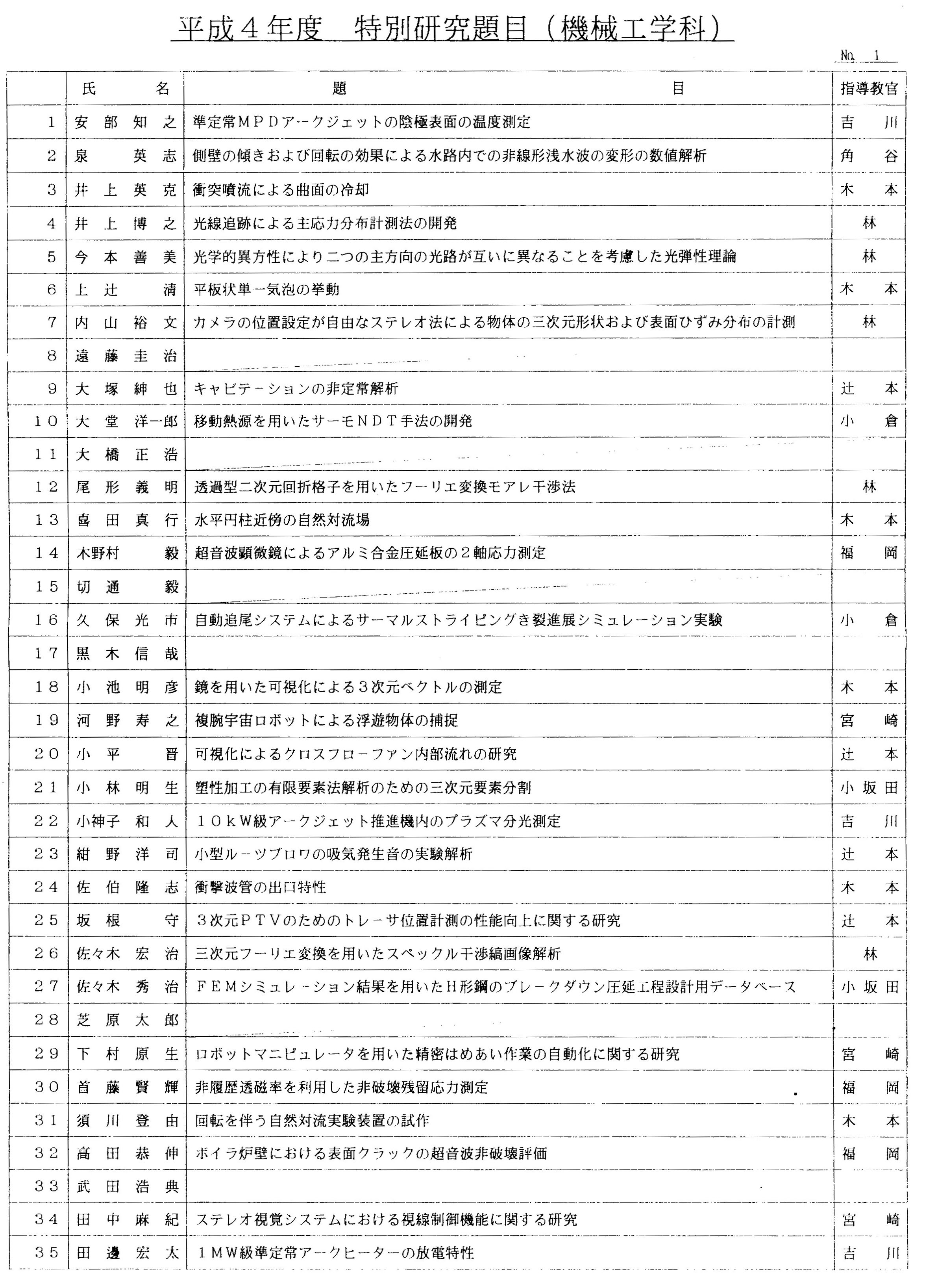 > 平成4年度 卒業論文題目