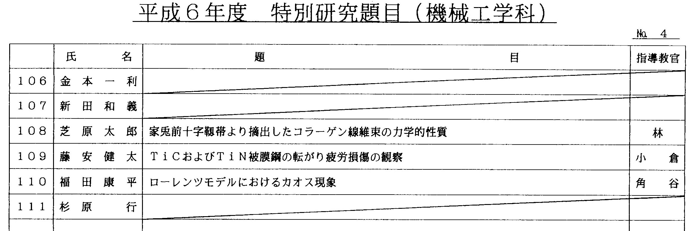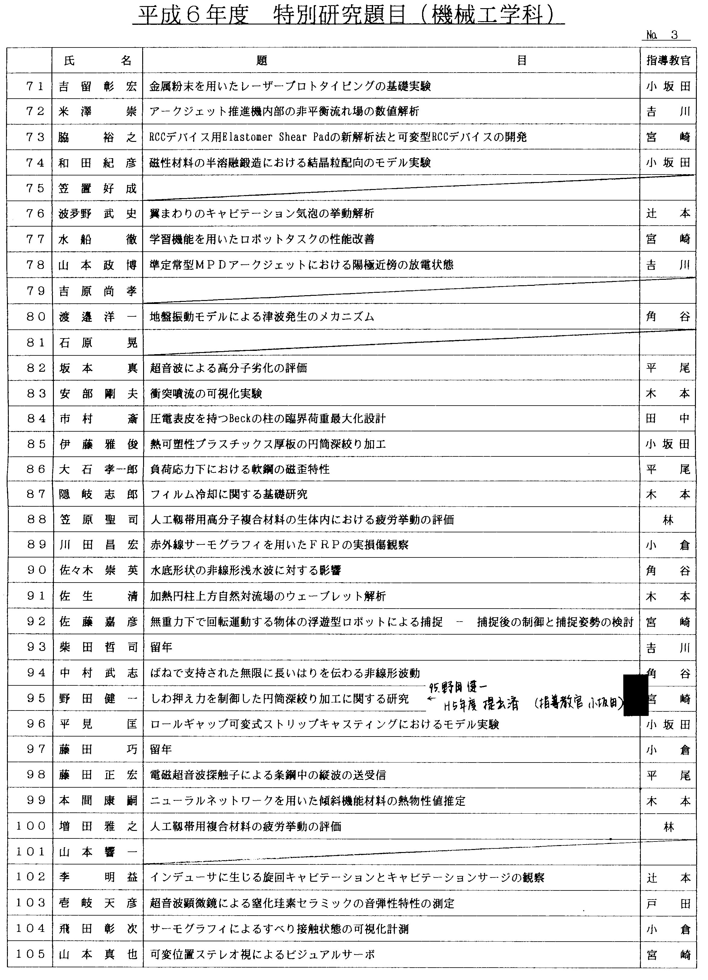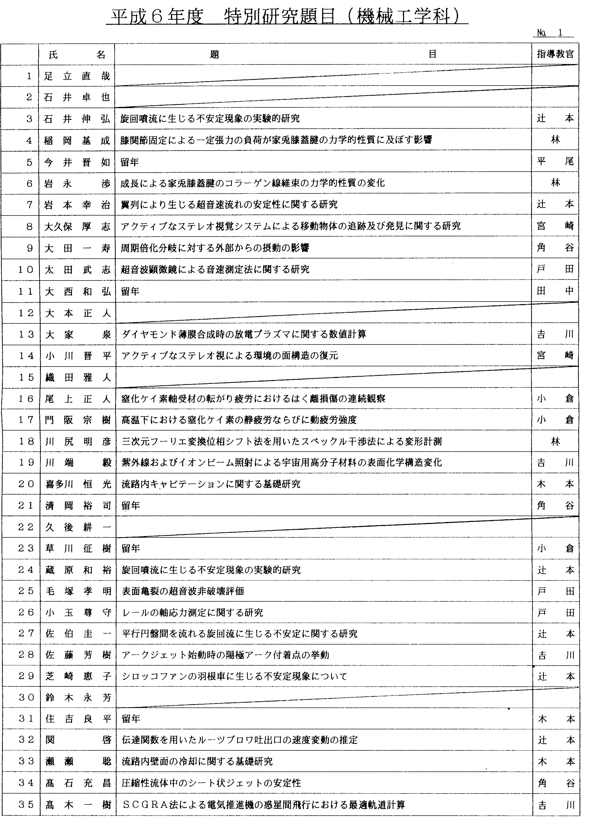平成6年度 卒業論文題目
