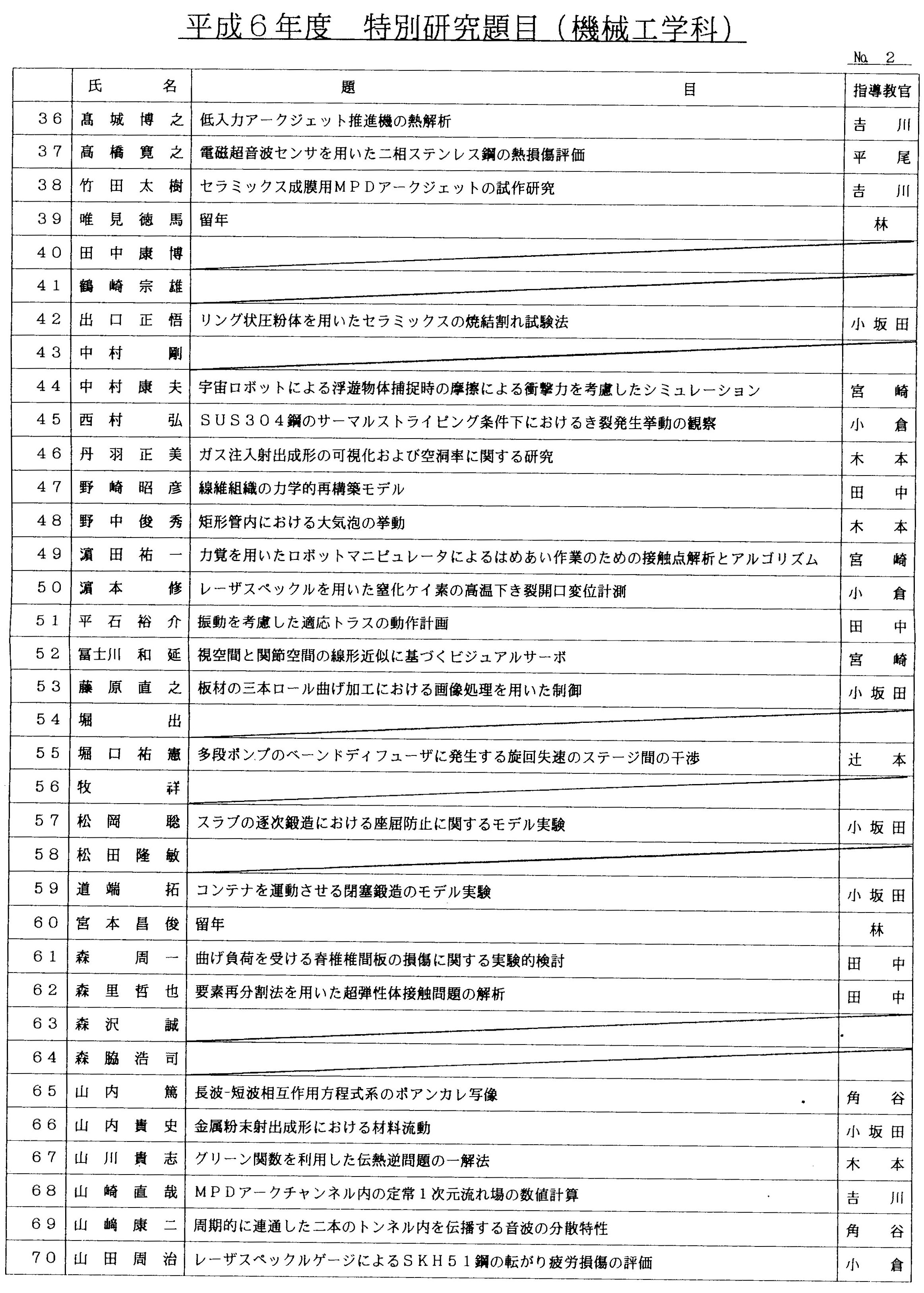 > 平成6年度 卒業論文題目