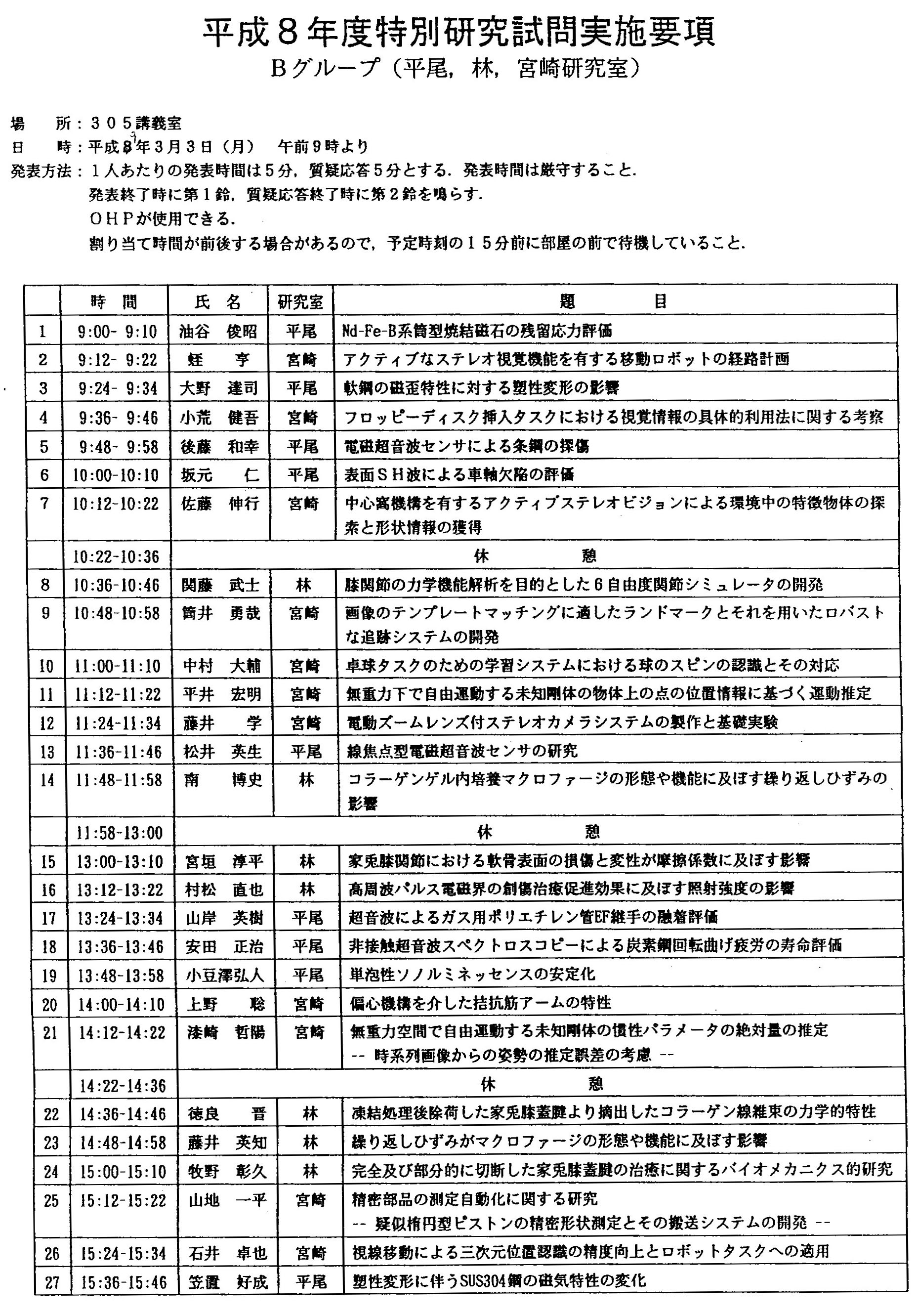 > 平成8年度 卒業論文題目