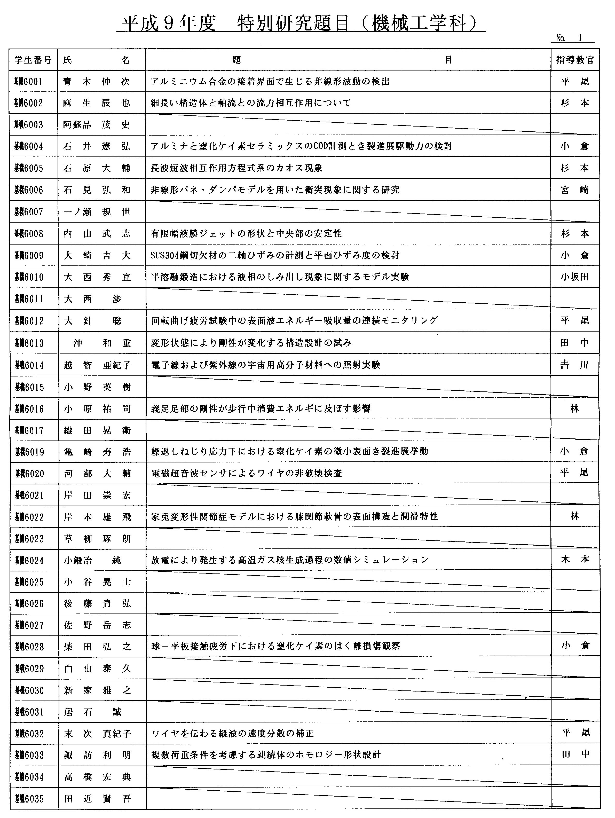 平成9年度 卒業論文題目