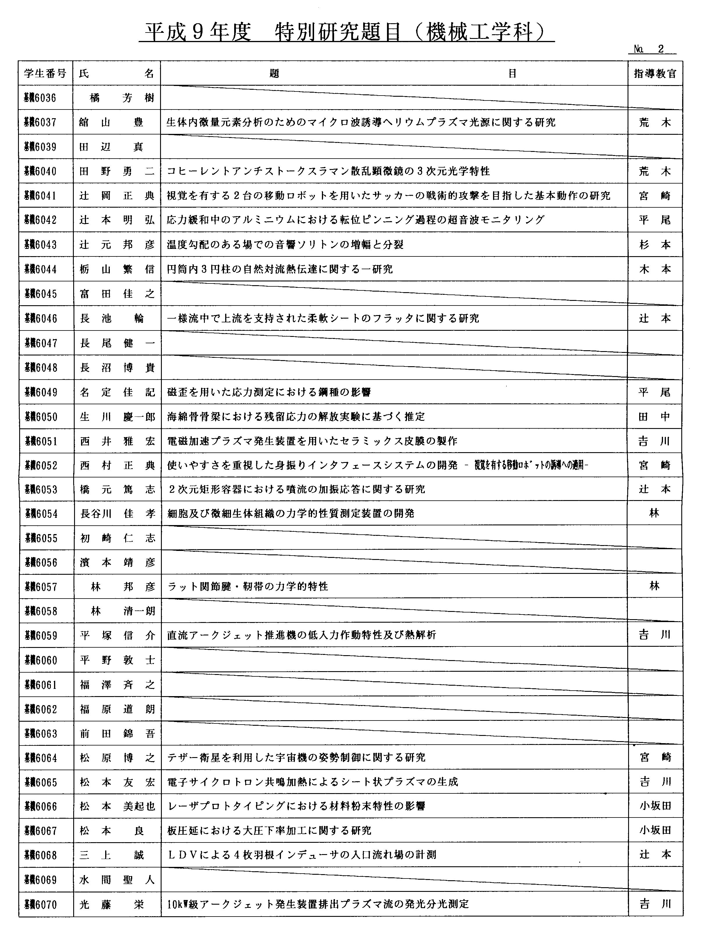 > 平成9年度 卒業論文題目