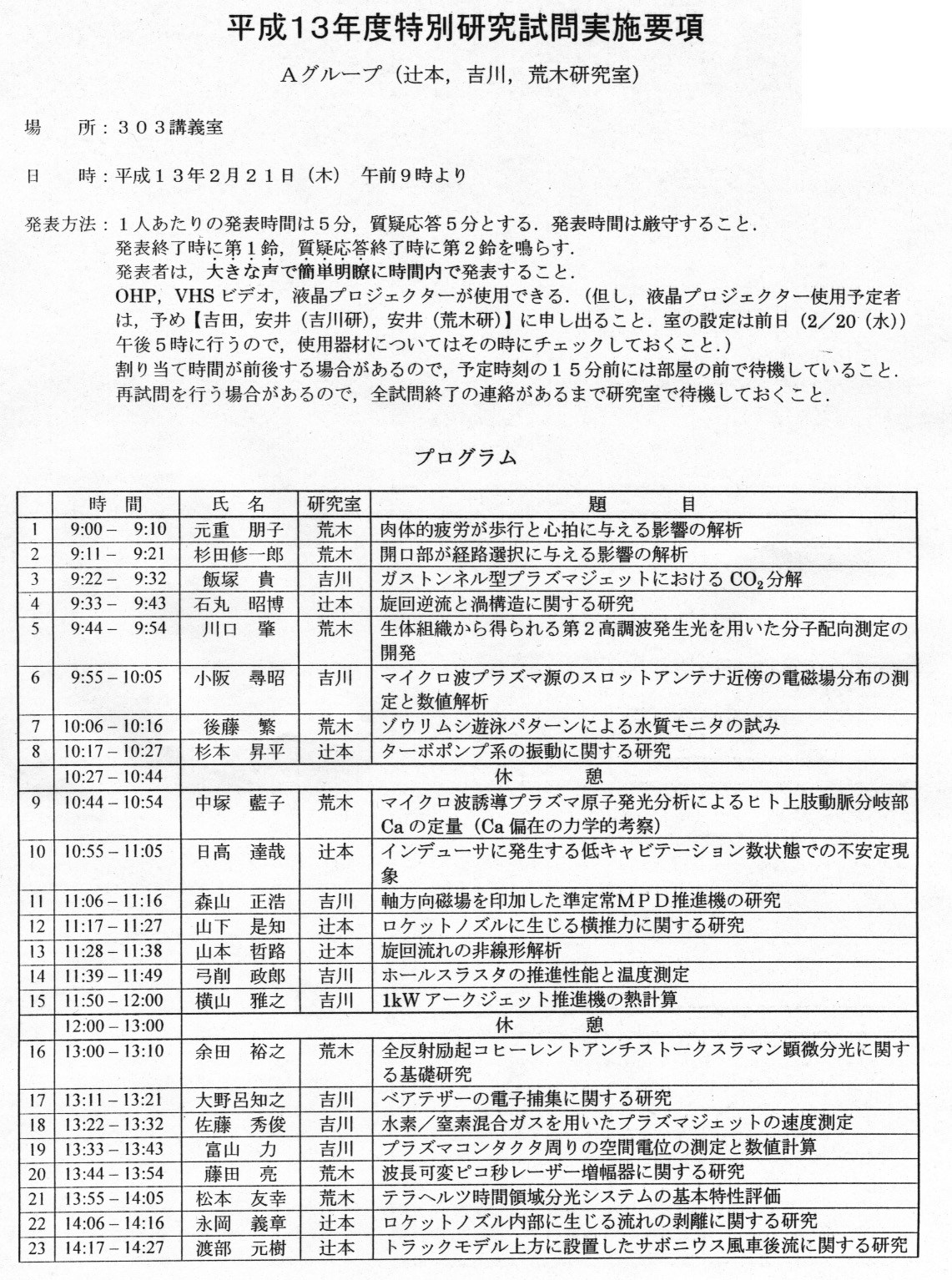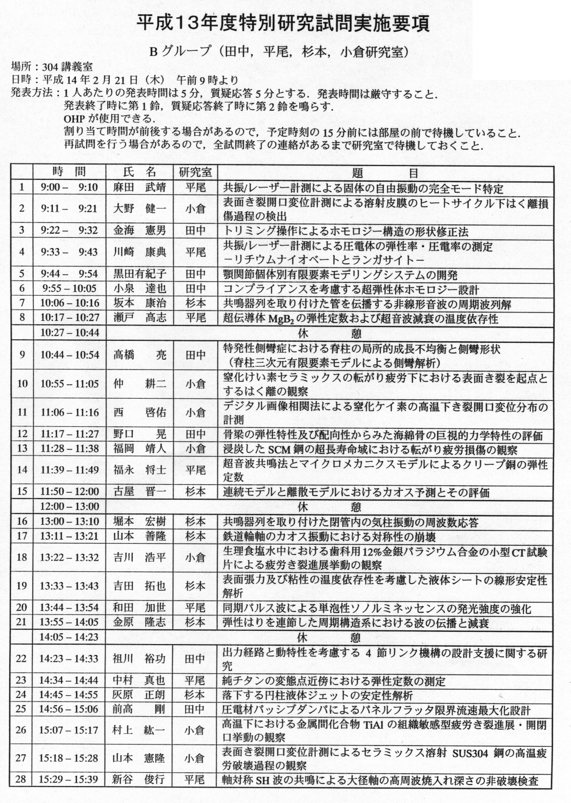 > 平成13年度 卒業論文題目