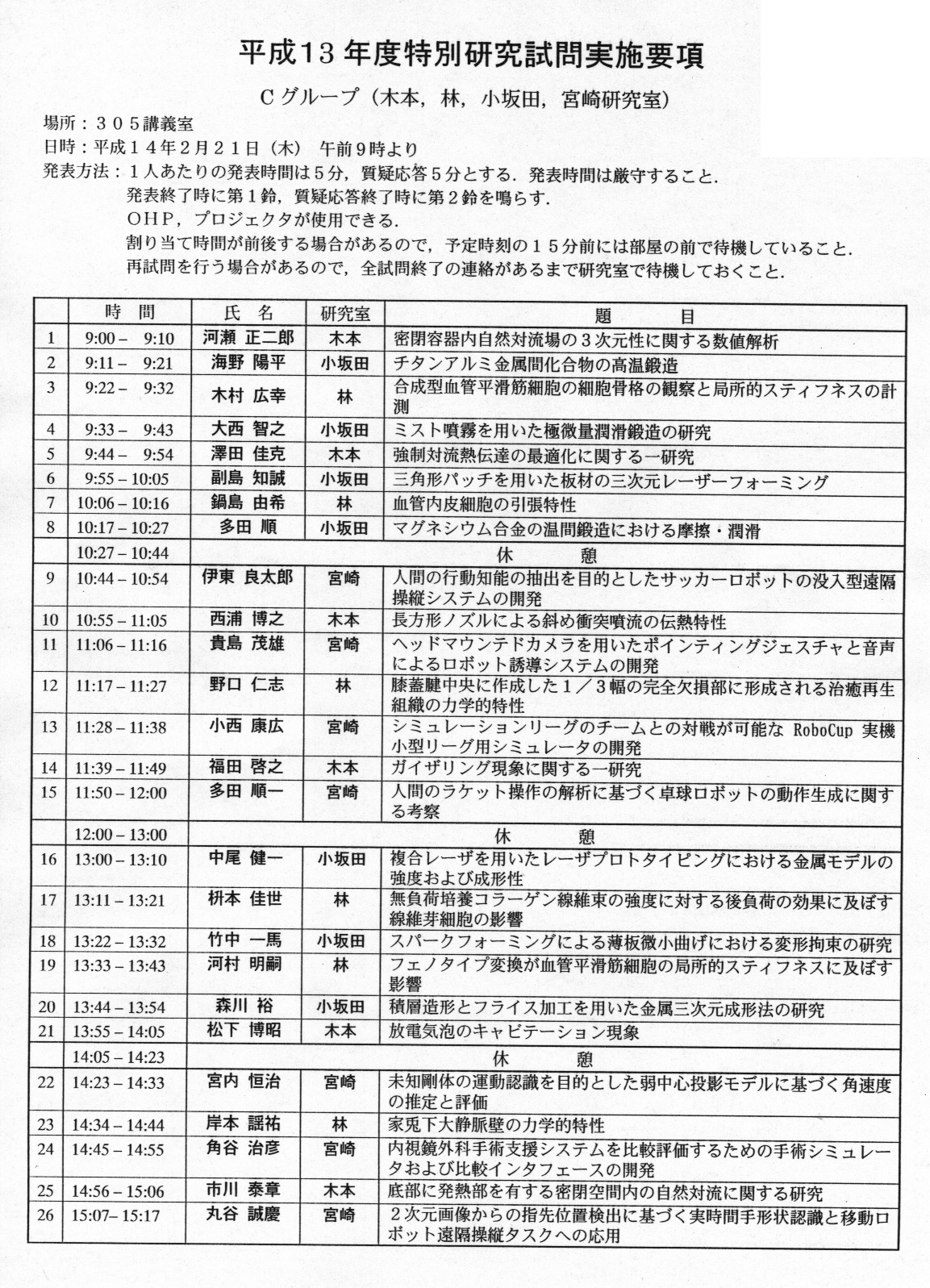 平成13年度 卒業論文題目