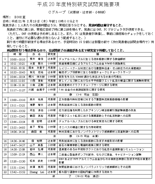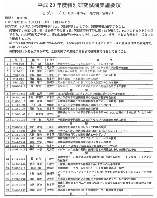 > 平成20年度 卒業論文題目