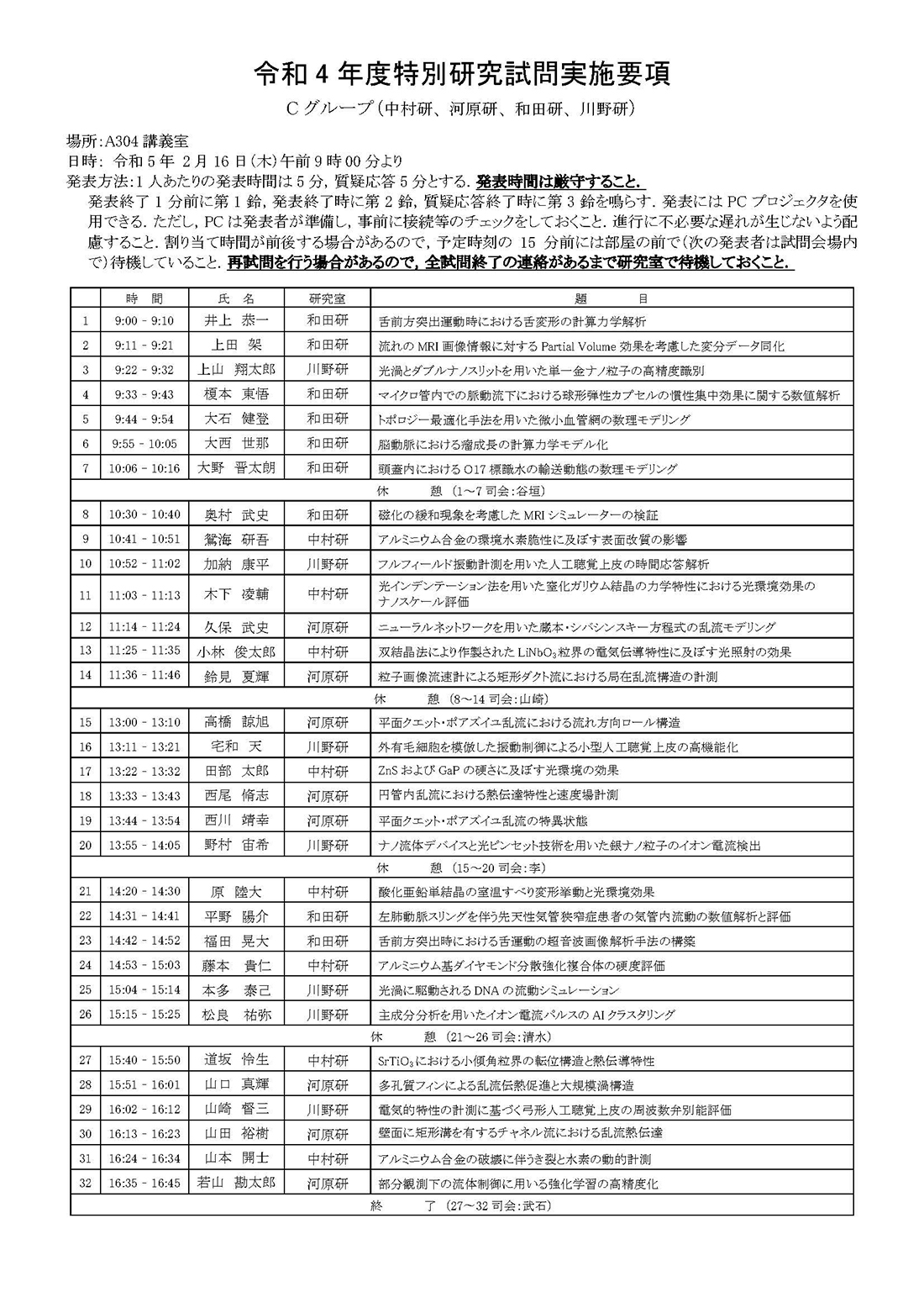 > 令和4年度 卒業論文題目