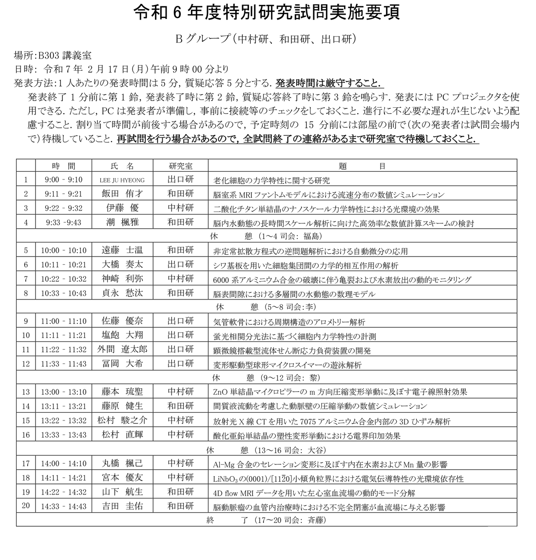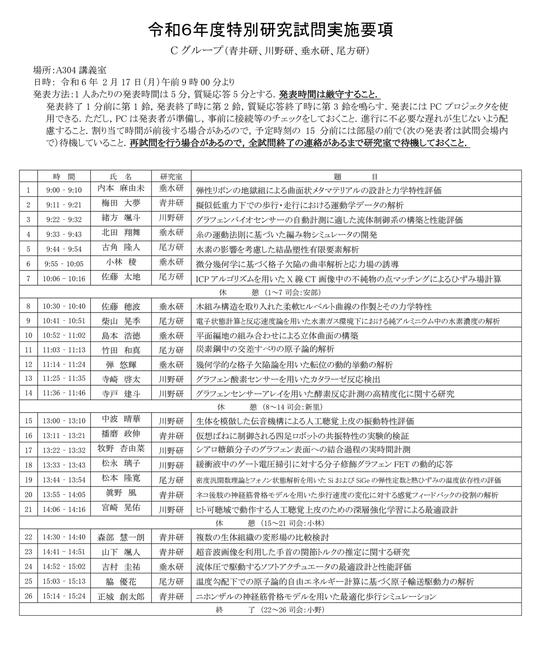 > 令和6年度 卒業論文題目