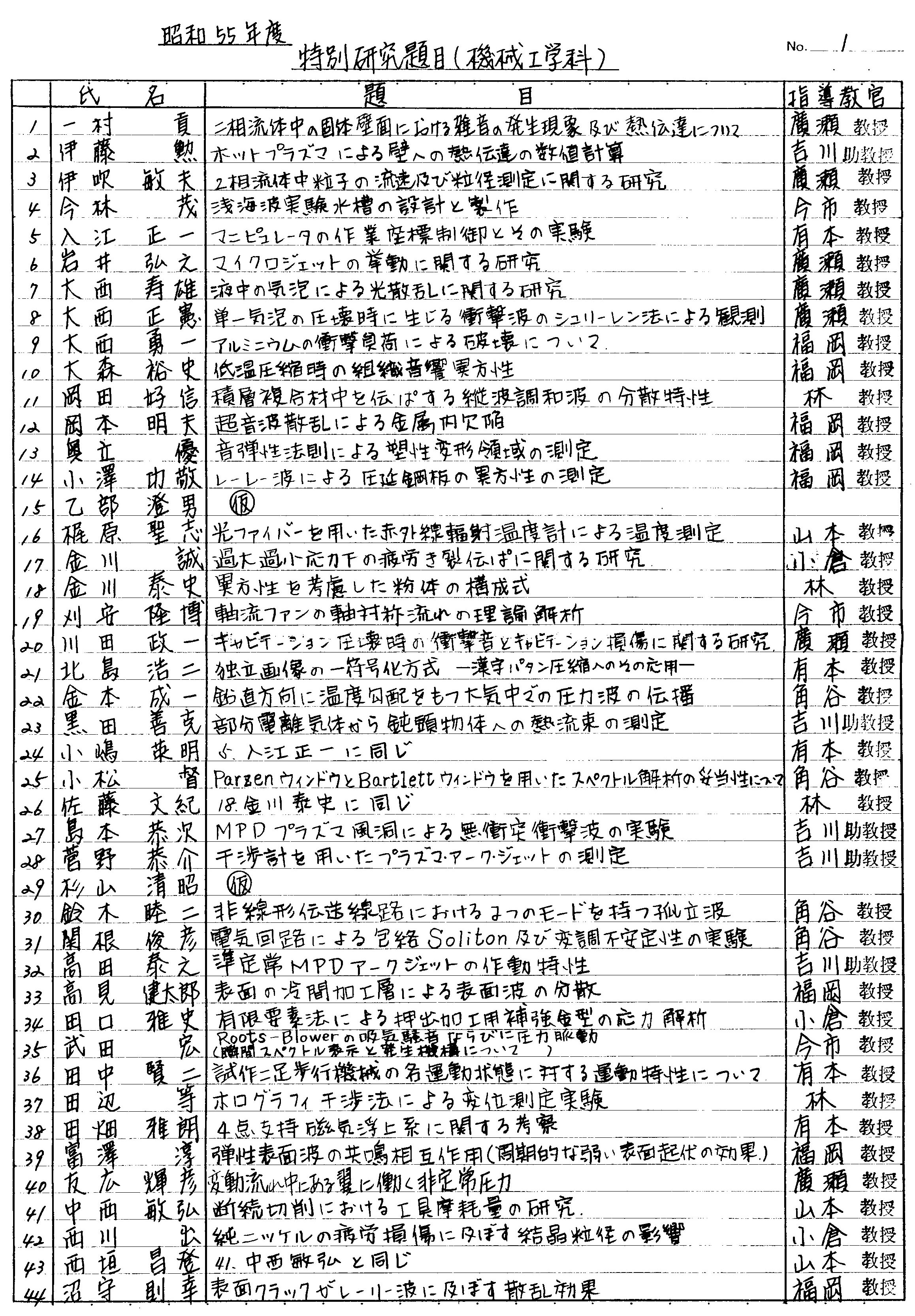 > 昭和55年度 卒業論文題目