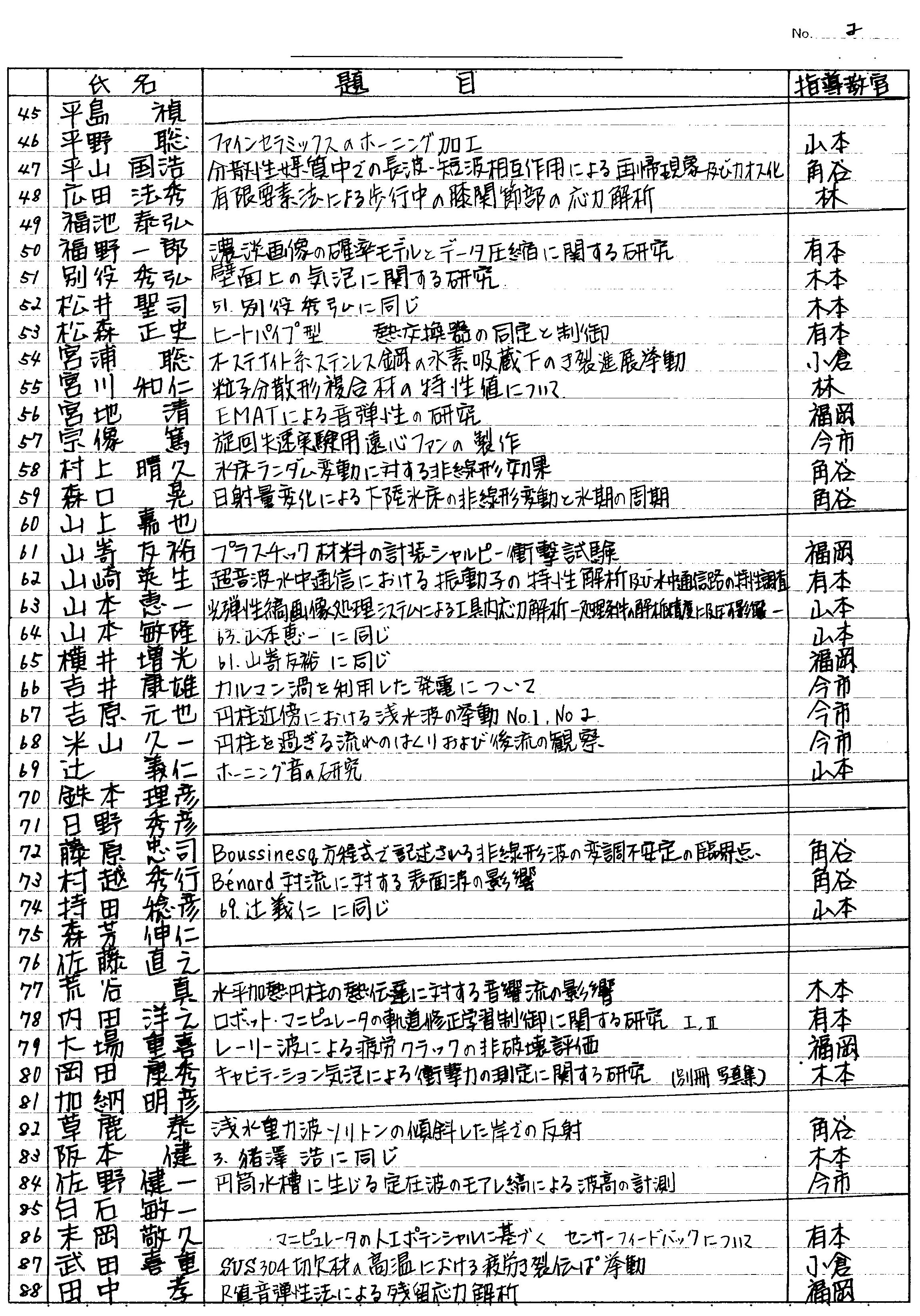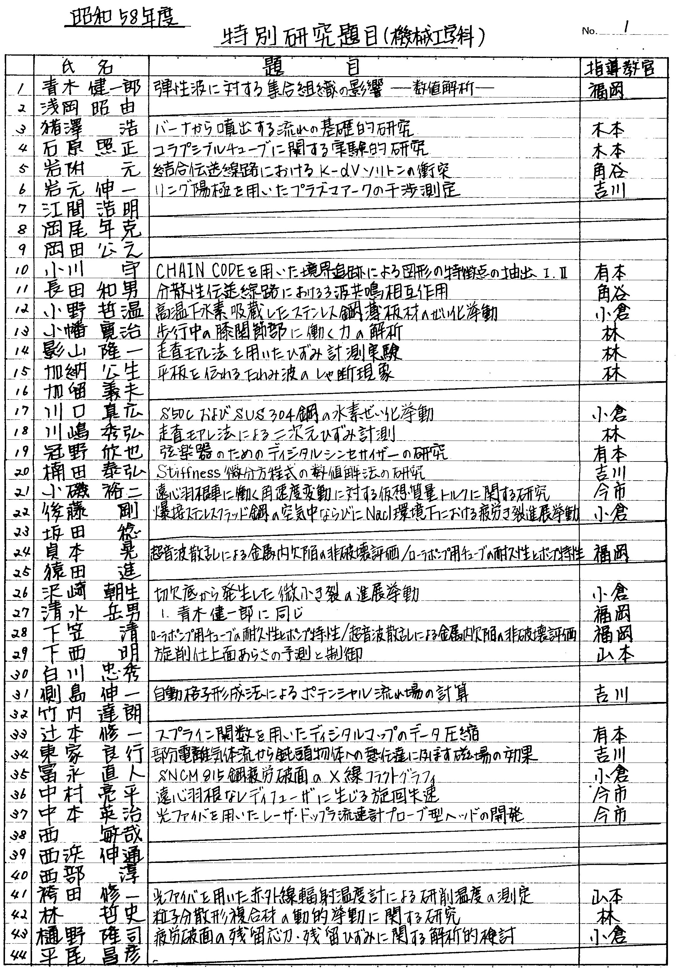 > 昭和58年度 卒業論文題目