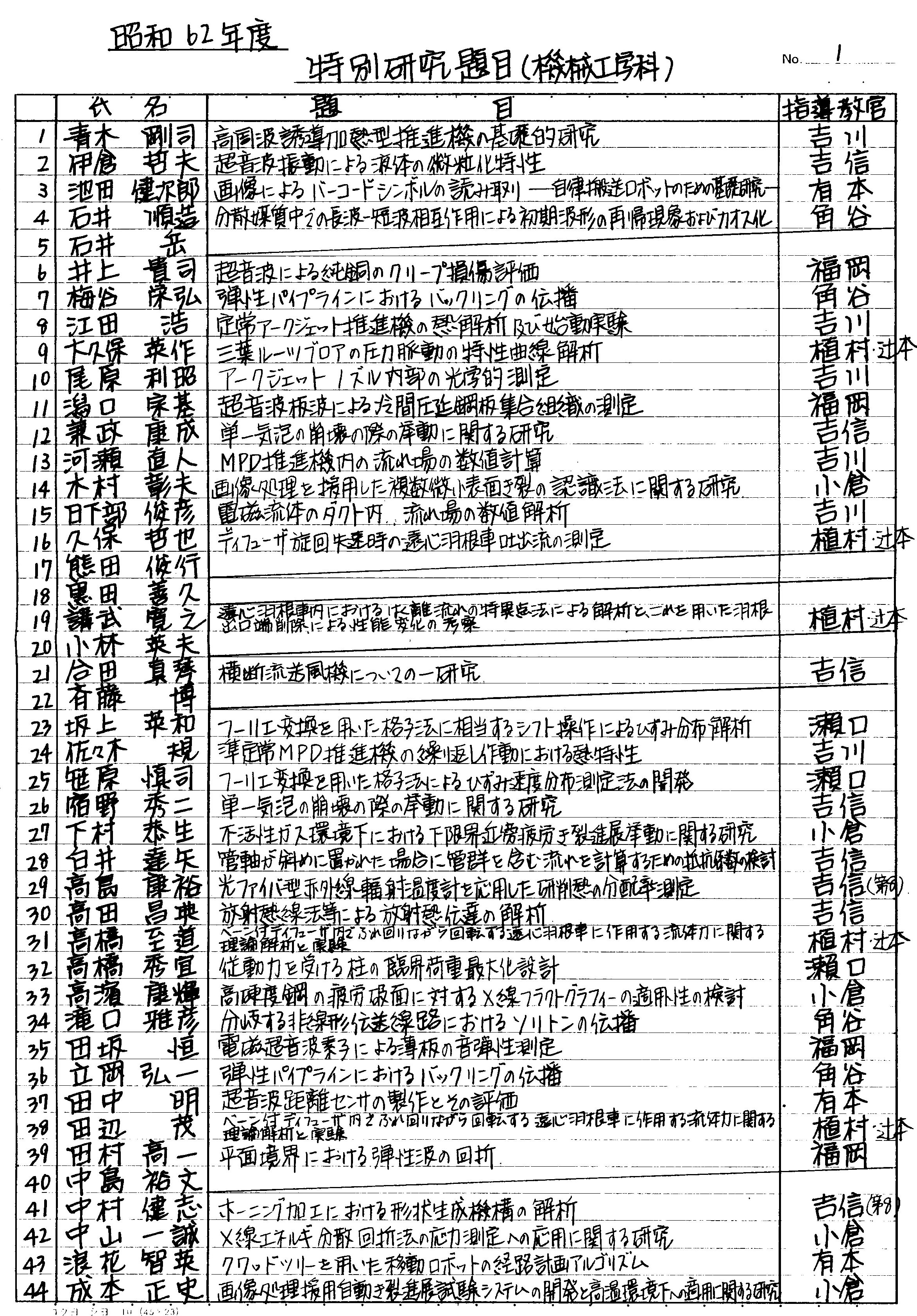> 昭和62年度 卒業論文題目