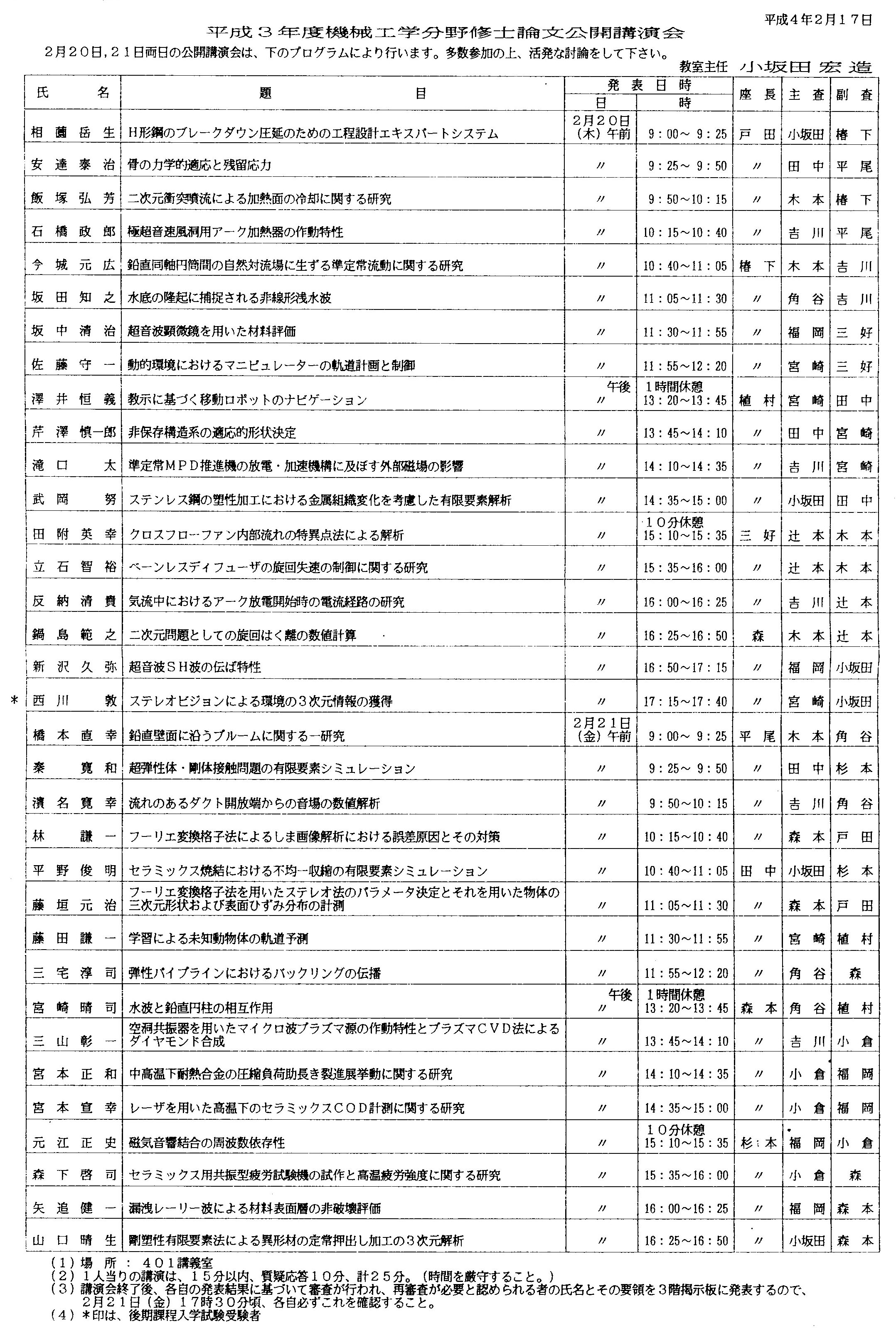平成3年度 修士論文題目