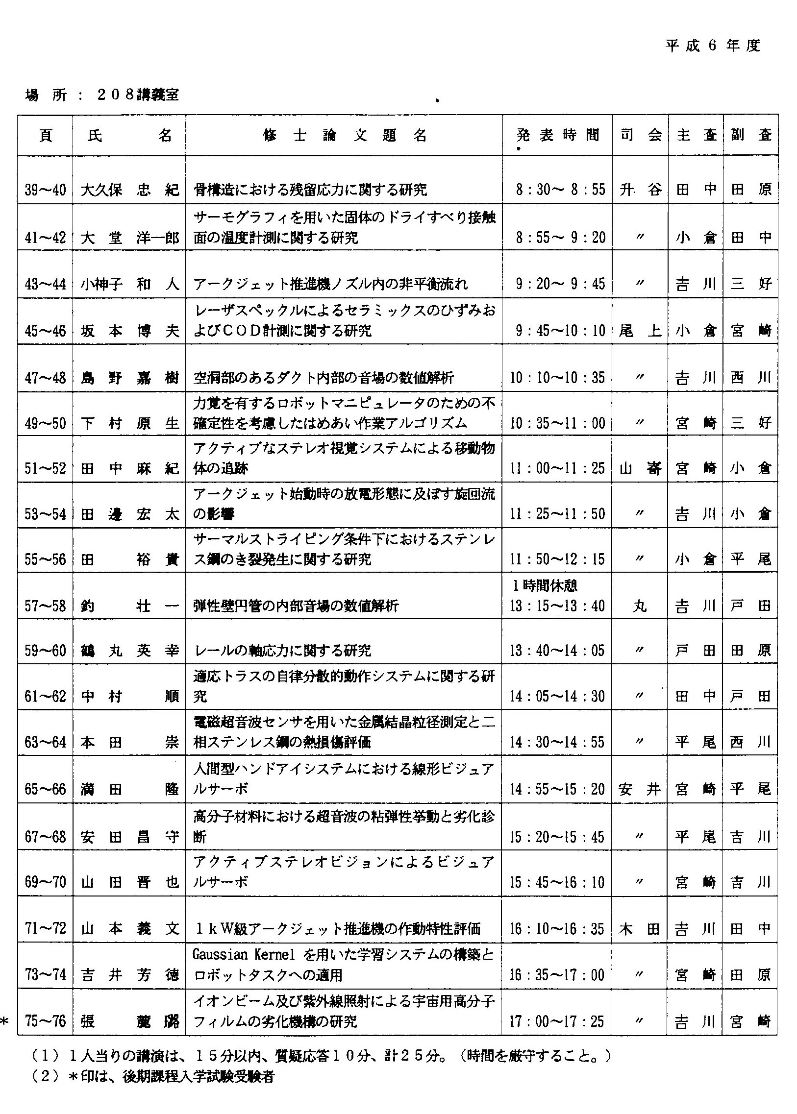 平成6年度 修士論文題目